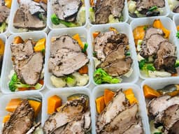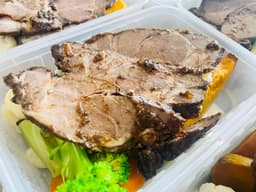 Pork marinated overnight with our Chinese inspired recipe for our Eat Real Complete Meal which is with Roast Pumpkin & Sweet Potato & Fodmap Friendly Steam Vegetables. Who said eating vegetables are boring?