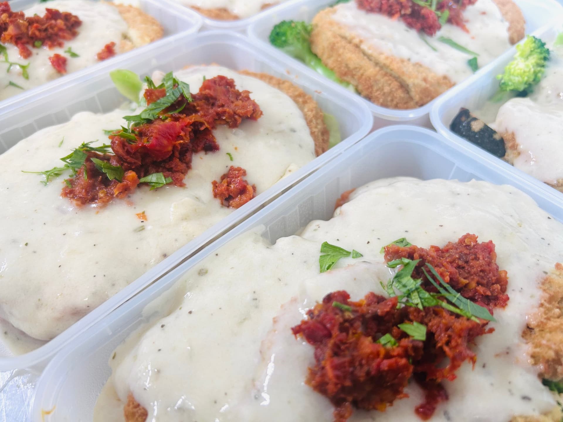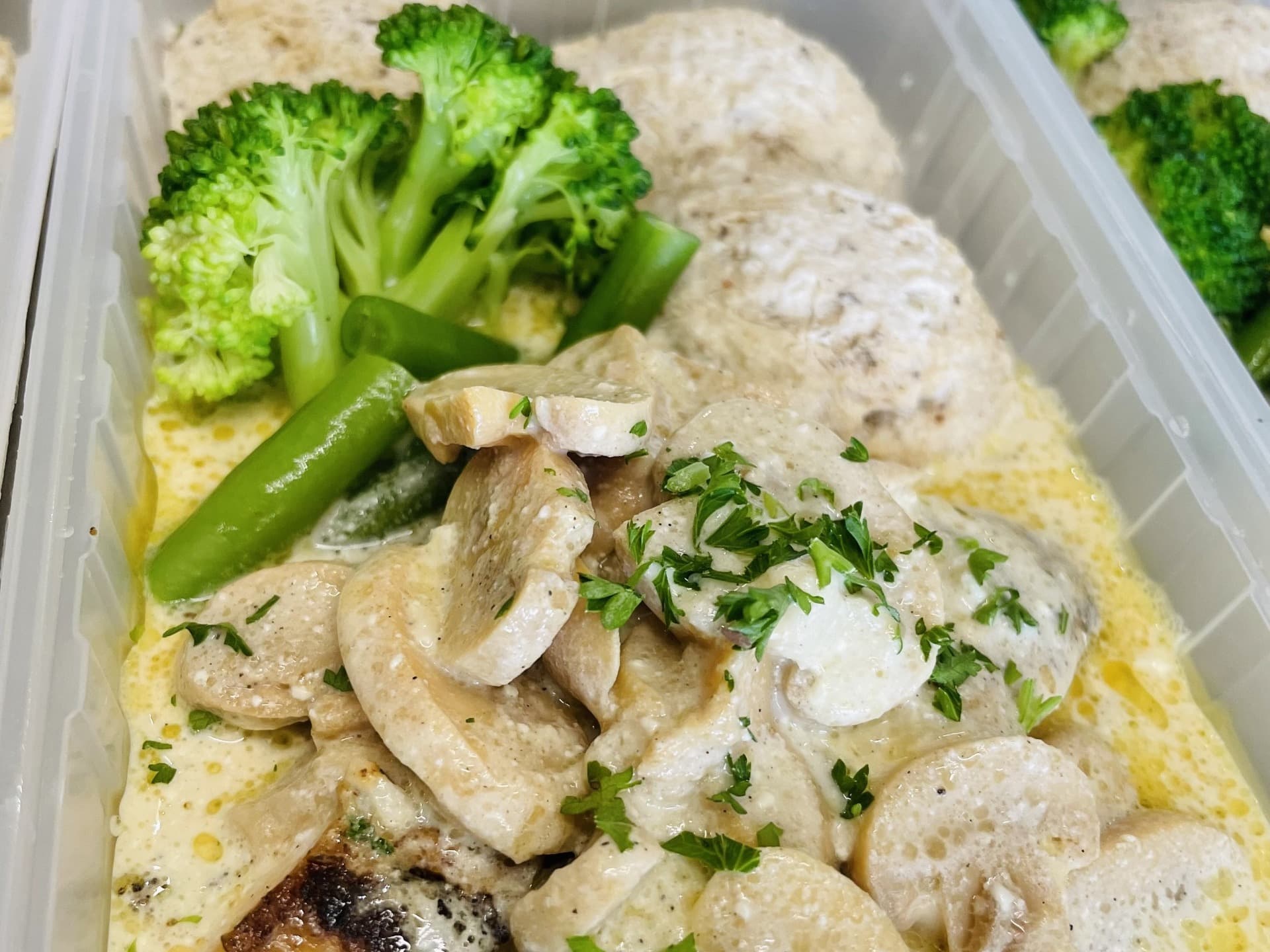 For fresh meals remove the lid slightly and heat in microwave for 2-3 minutes or until hot. When frozen it is recommended to defrost the meal first before heating. Time will vary depending on microwave.