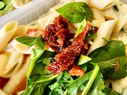 Chicken breast, Pasta (Wheat), Cream (Milk), Salted butter (Milk), Sun-dried tomatoes, Cheese (Milk), Garlic, Spinach, Tapioca Flour, Black pepper, Himalayan Salt