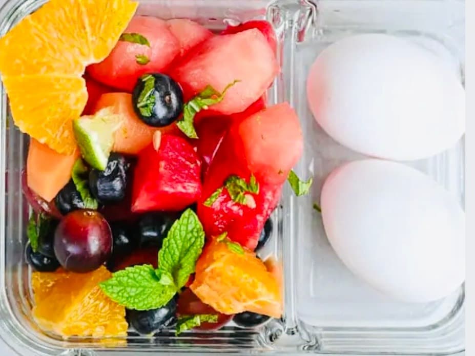 "New To Menu" This was our original healthy breakfast pack that we offered over 7yrs ago. It could also be great as a 2 x snack in a day. 2 x Free range boil eggs, small fruit salad on the side and a small granola mix. This was my favourite breakfast l had a for a while. Easy no fuss and it was either breakfast or snack for the day.
