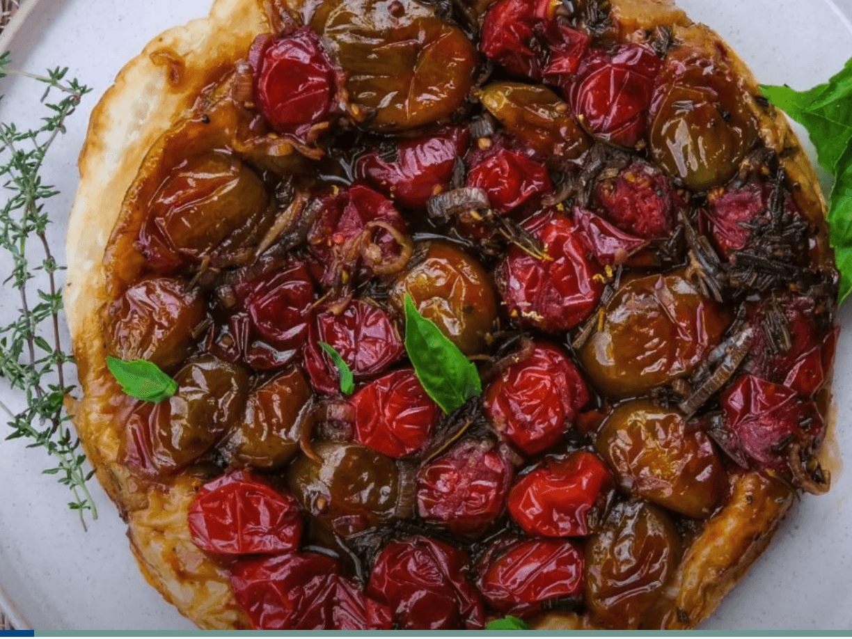 We are making the most of the seasons ripe tomatoes with this decadent tomato tarte tatin that pays Homage to my early days of being a chef. It is studded with roasted golden shallots and served with whipped ricotta and olive tapenade. It's sweet and salty and pure heaven. Perfect for the ideal Sunday lunch or midweek meal. Simply pair it with some crisp salad leaves
