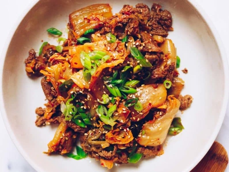3–4 Serves – Bold, tangy, and full of flavour, our Korean Lamb & Kimchi Stir Fry combines Korean-style lamb with house-fermented kimchi, spring onions, garlic, and a balanced blend of soy and sesame. Packed with vegetables including broccoli and cauliflower greens, carrot and capsicum, this dish is perfect over steamed rice, tossed through noodles, or enjoyed on its own as a hearty midweek meal. It delivers gentle heat and savoury depth in every bite. Gluten & Dairy Free. Contains Sesame & Soy. Refrigerate and consume before the use by date, or freeze for up to 6 months. e1000g
