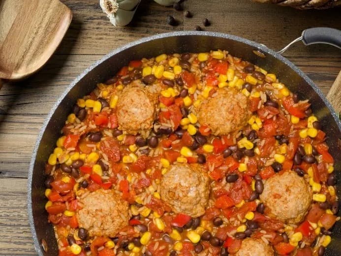 2 serves – Juicy smashed chicken meatballs simmered in a vibrant Mexican-style sauce with tomato, capsicum, garlic, and warming spices. The meatballs are lightly crushed to soak up plenty of flavour while naturally thickening the sauce. Combined with shredded carrot and charred corn, this dish works beautifully over rice, tucked into tortillas, or spooned over roasted veg for an easy, flavour-packed meal. Gluten and dairy free. Refrigerate and consume before the use by date, or freeze for up to 6 months. ℮500g