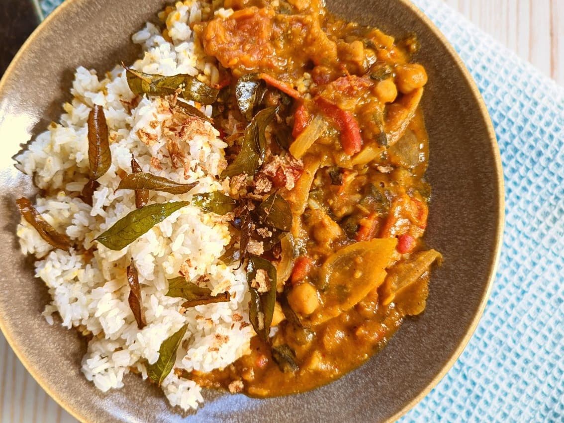 2 Serves - Chickpea, red lentil & veggie coconut curry w/ Australian mango on Basmati Rice. Celebrate Spring with this vibrant, nutrient-dense dish that will make your taste buds sing! The combination of chickpeas, capsicum, tomato, silverbeet, sweet potato, tasty neighbourhood curry leaves and mild spices makes it a great choice for the whole family—even the picky eaters. A great way to supercharge your diet with seasonal vegetables. You can add meat if you’d like, and enjoy with one of our other delicious curries or cryovac meats if you’re feeding a crowd. Our team of chefs have created the perfect blend of Mango sweetness and spices—making this a meal that will leave you feeling satisfied without feeling weighed down. This dish contains onion, garlic & capsicum ------------------ Reheat for Microwave: Heat on med-high for 4-5 minutes, or until steaming hot. ------------------- Refrigerate and use within 4 days of receiving your order, or freeze for up to 6 months