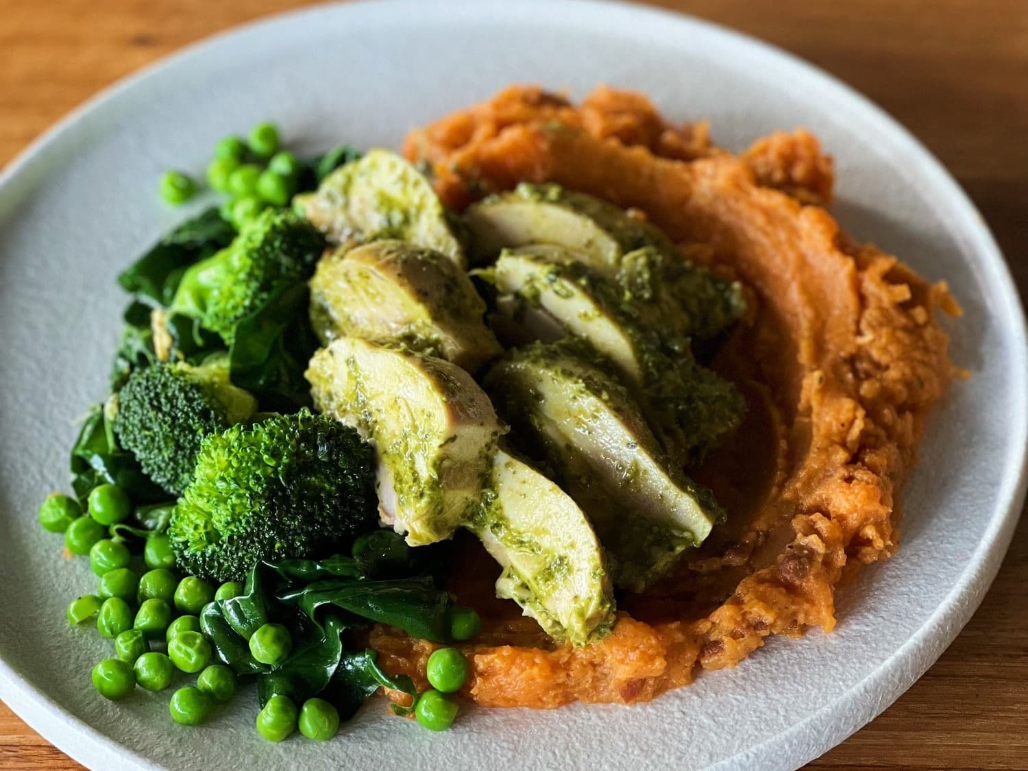 2 Serves - Nutritionally balanced, endlessly satisfying, super easy to prepare! Popular with busy people with active lifestyles, this dish was trialled extensively at our Local’s Club shop for many weeks. Nutrient dense sweet potato mash, tender, vibrant marinated herby chicken & seasonal braised greens. Eat this and you’ll be ready for anything! This dish contains garlic & onion ------------------ Reheat for Microwave: Microwave for 4-5 minutes on medium-high, or until steaming hot ------------------- Refrigerate and use within 4 days of receiving your order, or freeze for up to 6 months ℮900g