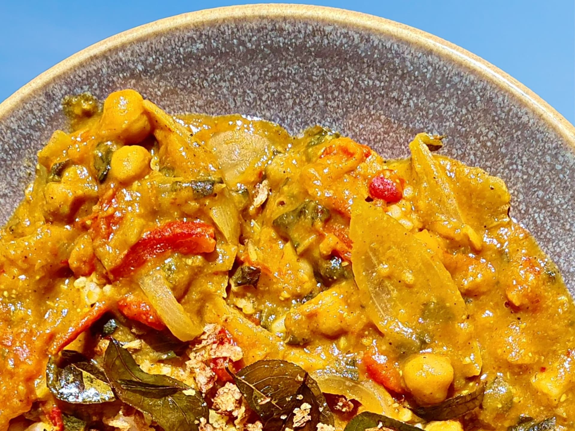 Chickpea, red lentil & veggie coconut curry w/ Australian mango. Vibrant, nutrient-dense and packed full of seasonal veg; this staple will make your taste buds sing, and will fuel your body right! The combination of chickpeas, capsicum, tomato, silverbeet, sweet potato, tasty neighbourhood curry leaves, sweet Australian Mango and mild spices makes it a great choice for everyone in your family—even those who are picky eaters. A great way to supercharge your diet with seasonal vegetables, you can add meat, if you’d like, and enjoy with one of our other delicious curries or cryovac meats if you’re feeding a crowd. To serve, just add rice! This dish contains onion, garlic & capsicum. ------------------ Reheat for Microwave: Heat on med-high for 4-6 minutes, or until steaming hot. Serving tip: just add rice or flatbread, and another curry from the menu if you're feeding a crowd! ------------------- Refrigerate and use within 4 days of receiving your order, or freeze for up to 6 months