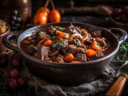 NOTE: LIMITED QUANTITY AVAILABLE Slow-cooked beef with onions, potatoes & carrots in a rich gravy