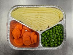 Beef mince, Potatoes, Peas, Carrots, Onion, Butter (Milk), Plain wheat flour, Celery, Worcestershire Sauce [Vinegar, Brown sugar, Malt vinegar (Barley), Golden syrup, Anchovy (Fish), Salt, Tamarind Food Acid (260), Spices, Caramel Colour (111)], Garlic, Gravy Mix [Wheat flour, Maltodexterin, Modified starch (E1442), Iodised salt, Sugar, Yeast extract, Vegetable fat, Flavour enhancer (621), Colour (150c), Onion powder], Salt, Pepper