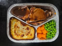 Your meal is supplied in a container designed for heating in a conventional oven and microwave. Meals must be heated to a minimum internal temperature above 70°C. Do not remove lid. Reheating times are approximate: From frozen thaw on defrost setting for 5 mins. Once defrosted heat on high for 4-5 mins or until hot.