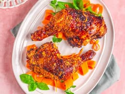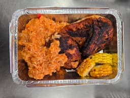Half a chicken, flamed grilled and seasoned with a non-spicey peri-peri marinade. Served with Mexi rice & corn on the cob