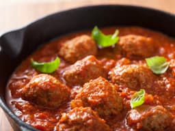 Italian meatballs (pork & beef) in rich ragu served with pasta and green beans