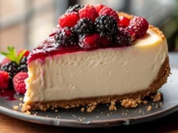 A luxurious dessert featuring a creamy and smooth cheesecake filling infused with the delicate flavour of mixed berries.