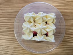 Neufchatel Cheese [Milk, Cream (Milk), Salt, Vegetable gum (412), Lactic acid, Starter culture (Wheat)], Mixed Berries [Blueberries, Strawberries, Balckberries, Raspberries], Emulsifiers [Emulsifier (471, 475), Soy lecithin], Water, Sugar, Vegetable fat, Vegetable oil, Cream (Milk), Wheat flour, Eggs, Invert sugar, Thickener (412), Thickener (1422), Whey powder (Milk), Gelatine, Glucose, Raising Agents (450, Sodium Bicarbonate), Natural vanilla flavouring, Salt, Lemon juice concentrate, Citric acid (330), Vegetable Gums [Agar, Carrageenan, Xanthan gum (E415)]