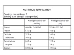Your meal is supplied in a container designed for heating in a conventional oven and microwave. Meals must be heated to a minimum internal temperature above 70°C. Do not remove lid. Reheating times are approximate: From frozen thaw on defrost setting for 9 mins. Once defrosted heat on high for 4-5 mins or until hot.