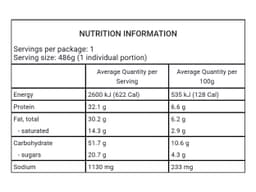 Your meal is supplied in a container designed for heating in a conventional oven and microwave. Meals must be heated to a minimum internal temperature above 70°C. Do not remove lid. Reheating times are approximate: From frozen thaw on defrost setting for 5 mins. Once defrosted heat on high for 4-5 mins or until hot.