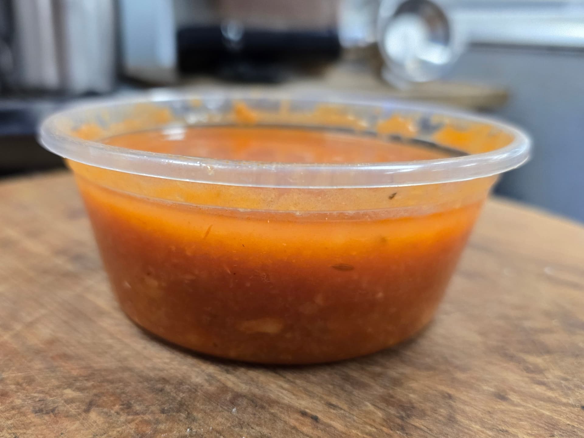 A tasty red lentil chickpea soup that combines lentils, chickpeas, and a variety of spices, simmered together in a tomato-based broth. Standard Soup - 280ml Large Soup - 540ml