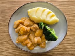 Apricot chicken served with mash potatoes & broccoli