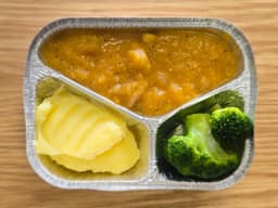 Your meal is supplied in a container designed for heating in a conventional oven and microwave. Meals must be heated to a minimum internal temperature above 70°C. Do not remove lid. Reheating times are approximate: From frozen thaw on defrost setting for 5 mins. Once defrosted heat on high for 4-5 mins or until hot.