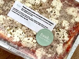 Tomatoes, Sweet potato, Leek, Lasagne sheets (Wheat, Egg), Red onion, Goat's cheese (Milk), Extra virgin olive oil, Baby spinach, Parmesan (Milk), Sea salt, Balsamic vinegar (Sulphites), Rosemary, Oregano