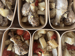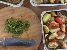 Chicken thigh cutlets, Potato, Cherry tomatoes, Extra virgin olive oil, Thyme, Anchovy (Fish), Garlic, Lemon zest, Oregano