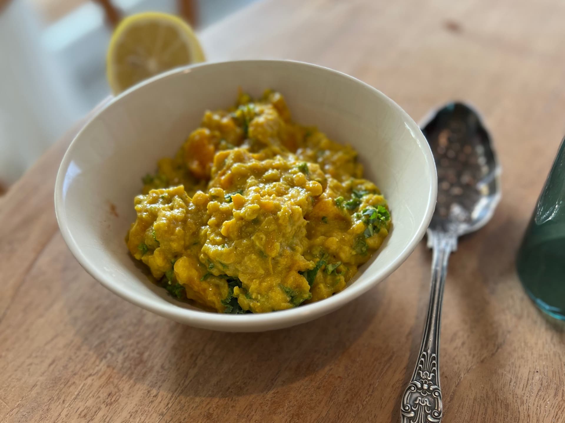 A mild and creamy dhal with pumpkin. Serve as a side or enjoy over rice dolloped with condiments for a main meal.