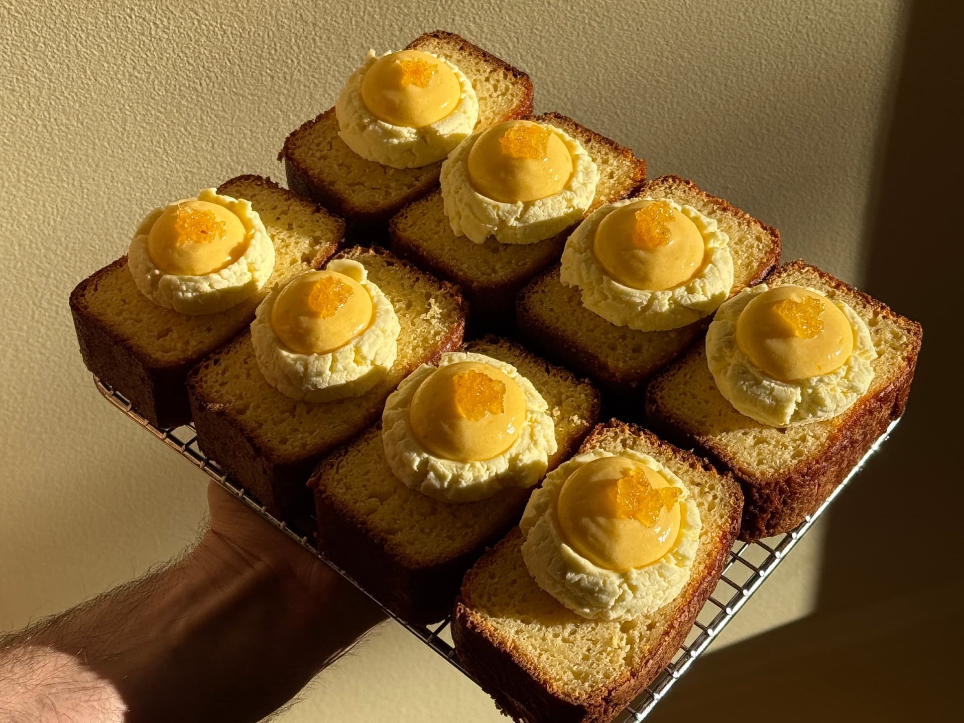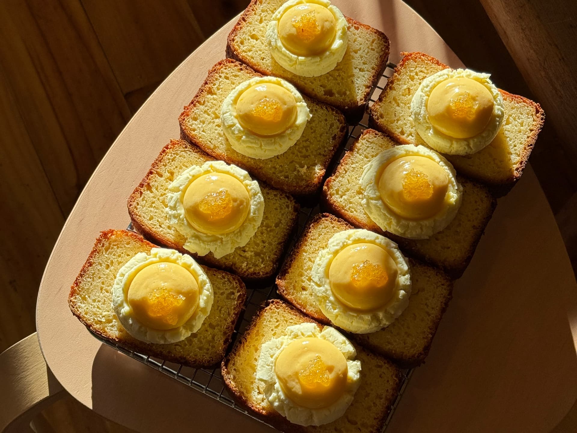 Our OG. Soft and crumbly lemon yoghurt cake. Icing done your way! Pick the traditional lemon glaze, which can be custom decorated with herbs or flowers of your choice. Or for a more luxurious feel, pick our house-made mascarpone & lemon curd, topped with yuzu pieces. We can deliver this cake whole or sliced. 8 slices per cake. Please include your icing preference in your order notes, and we will be in touch to confirm.