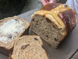 Light, fluffy, semi-sourdough loaves that can be sliced and toasted. Studded with juicy raisins, sultanas, currants & oranges. Finished with a sticky, spiced apricot glaze