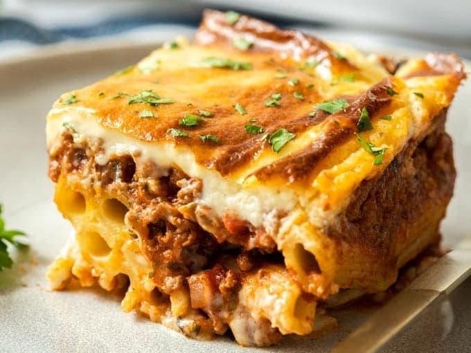 Known as the Greek lasagne however I am not going to get into who does it best! Both are delicious and I do think this one looks so pretty. Please note if you require gluten free to make a note on your order and we will use GF pasta and bechamel.