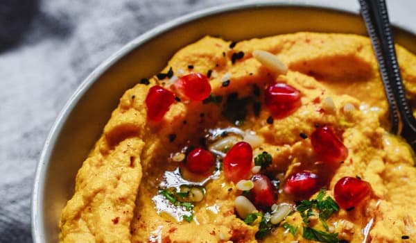 Roasted carrots combined with lime and spices and topped with pistachio and pickled onion. Delicious on bread or as part of a cheese board with crackers