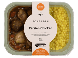 An aromatic dish, bursting with flavour, pairing sweet spices with free-range chicken, chickpeas & veggies. Served with pearl couscous. Similar to a chicken casserole style dish, this meal has a mild spice level.