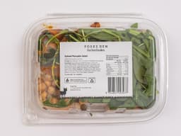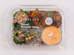 Spiced pumpkin [Olive oil, Pink salt, Black pepper, Kent (jap) pumpkin], Chickpea, Brown lentil, Yoghurt dressing [Greek yoghurt (Milk), Pickled mango, Maple syrup, Water, Apple cider vinegar, Pink salt], Baby spinach, Rocket, Spices mix for pumpkin [Ground coriander, Ground cumin, Garam masala, Kashmiri ground chilli, Ground turmeric], Currants, Red onion, Coriander