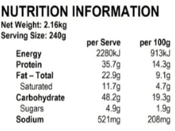 Remove from packaging. Heat in a pre-heated oven at 180°C for 15 minutes. Ensure the centre reaches 75°C or above before consuming.