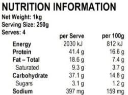 Remove from packaging. Heat in a pre-heated oven at 180°C for 35 minutes. Ensure the centre reaches 75°C or above before consuming.