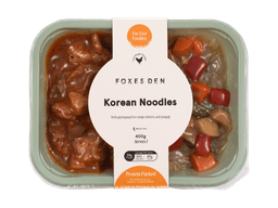 Sweet Potato Noodles [Sweet potato noodles, Canola oil, Water], Korean Chicken & Sauce [Chicken, Water, Soy sauce (GF), Gochujang (Wheat, Soy), Sugar, Sesame oil, Ginger, Garlic, Rice wine vinegar, Cornflour, Gochugaru, Oil], Jangaiji, Pickled Veg [Carrots, Daikon, White vinegar, Brown onion, Soy sauce (GF), Red capsicum, Maple syrup, Fish sauce, Green chilli, Garlic]