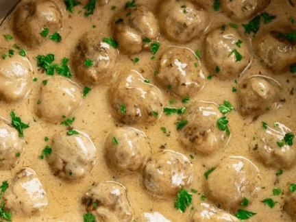 Swedish meatballs in creamy nutmeg gravy with a side of mash and mixed veggies.