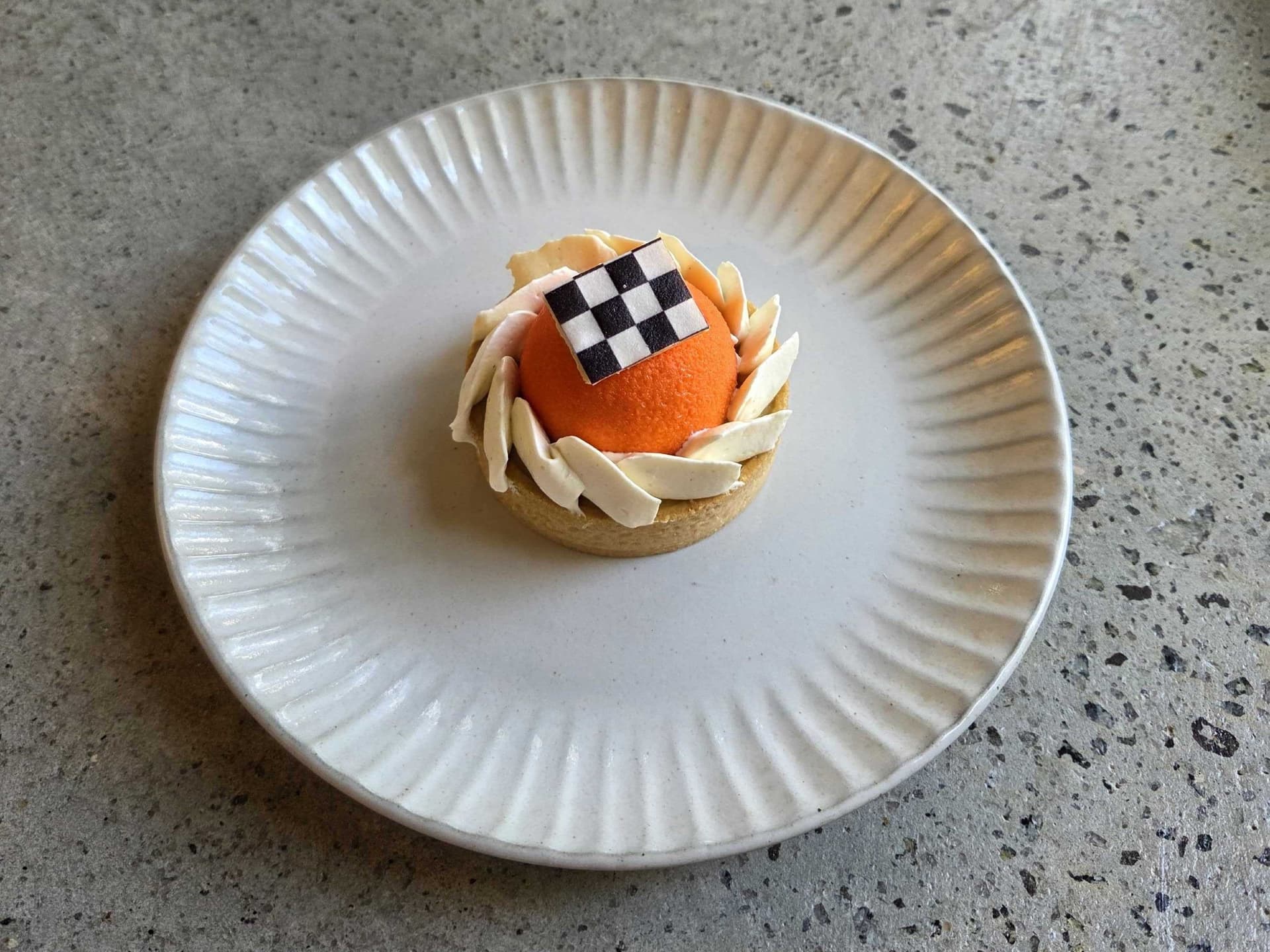 Zoom, zoom. The Grand Peach took us trackside at the Grand Prix, and now we're bringing it to you. Our signature tart shell, filled with tangy raspberry compote, passionfruit curd and a creamy peach mousse.