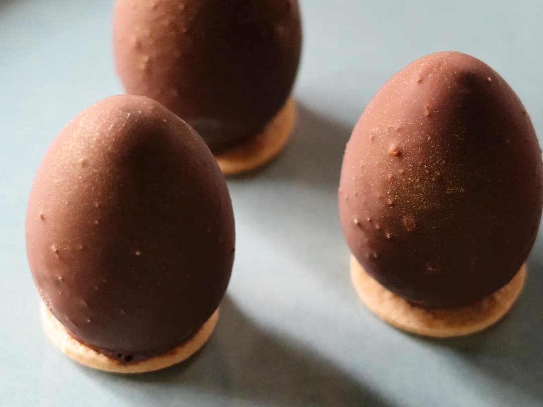 Our new Easter special is sure to put a hop in your step! Dark chocolate crunchy coating with soft dark and white chocolate mousse and an ooey gooey house made almond praline filling.