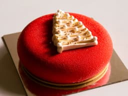 Have a holly, jolly Christmas with this stunning cake! The perfect pair, this mousse cake contained a tart raspberry jam and rich chocolate ganache centre, with a dreamy, creamy raspberry cheesecake mousse. Coated in Santa red spray coating, with a white cream Christmas tree and Christmas baubles.