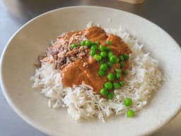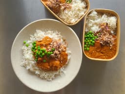 Chicken thighs, Home-made Chicken Broth, Peas, Fried shallots, Onion, Tomato paste, Cream - Thickened (Milk), Fresh Ginger, Garlic, Dried spices