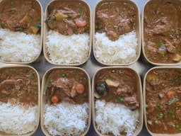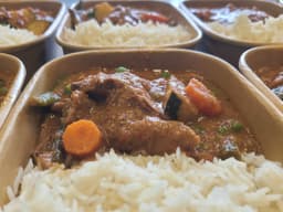 Lamb Shoulder, Water, Almonds, Carrots, Zucchini, Green beans, Peas, Coconut cream, Italian tomato, Onion, Basmati rice, Fresh Ginger, Fresh coriander, Garlic, Dried spices