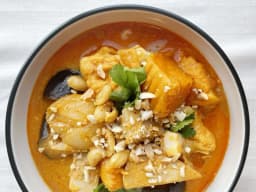 Cashew nuts, Sweet potato, Green beans, Garlic, Turmeric, Rice, Curry powder, Extra virgin olive oil, Jackfruit, Kale, Fresh coriander, Coconut cream, Italian tomato, Cumin
