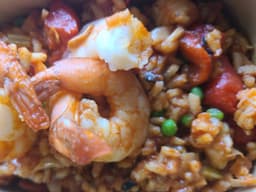Bone Broth [Water, Chicken - Whole, Carrots, Onion, Celery, Garlic, Black pepper, Bay leaves], Capsicum, Prawns (Crustacean), Arborio rice, Celery, Peas, Leek, Onion, Parsley, Dill, Garlic, Lemon zest, Italian tomato