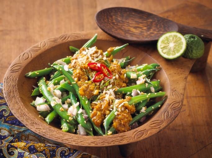 A light fritata accompanied by steamed vegetables and a tomato relish