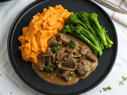 Beef Stroganoff w/ Mashed Sweet Potato & Broccolini