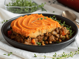 We combine lamb and vegetables with herbs and red wine for a classic shepherds pie and cover with a cheesy sweet potato topping. Perfect for this cold weather.