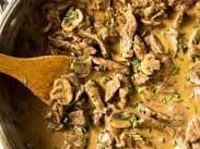Creamy tender chicken with mushrooms, best served with rice or pasta.