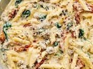 Creamy sauce with semi dried tomatoes, spinach and capsicum tossed with salami slices perfect with any type of pasta.