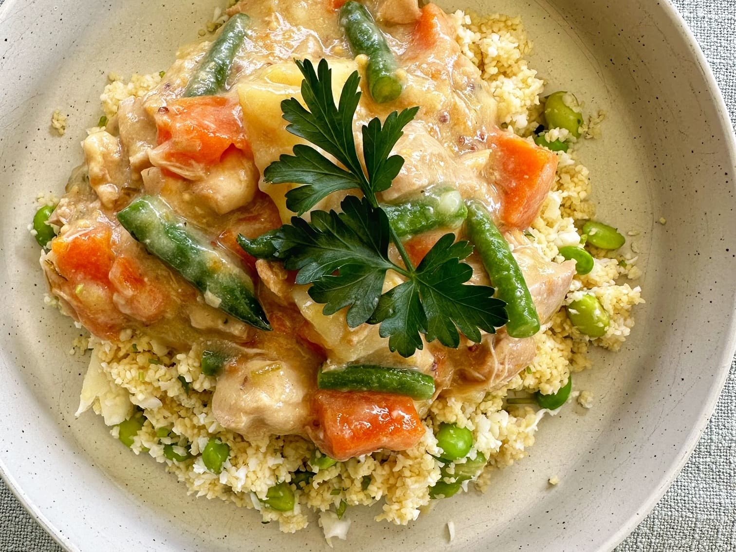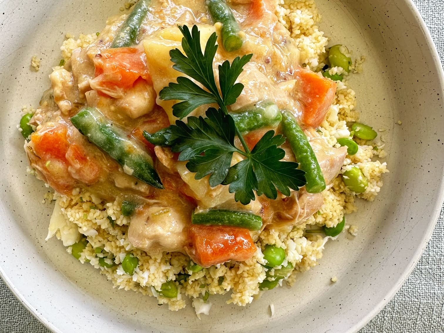 Lower in fat and lighter in carbs but nice and filling Steamed free range chicken serve with sweet potato mashed flavoured with chilli and ginger served with broccolini and edamame on the side