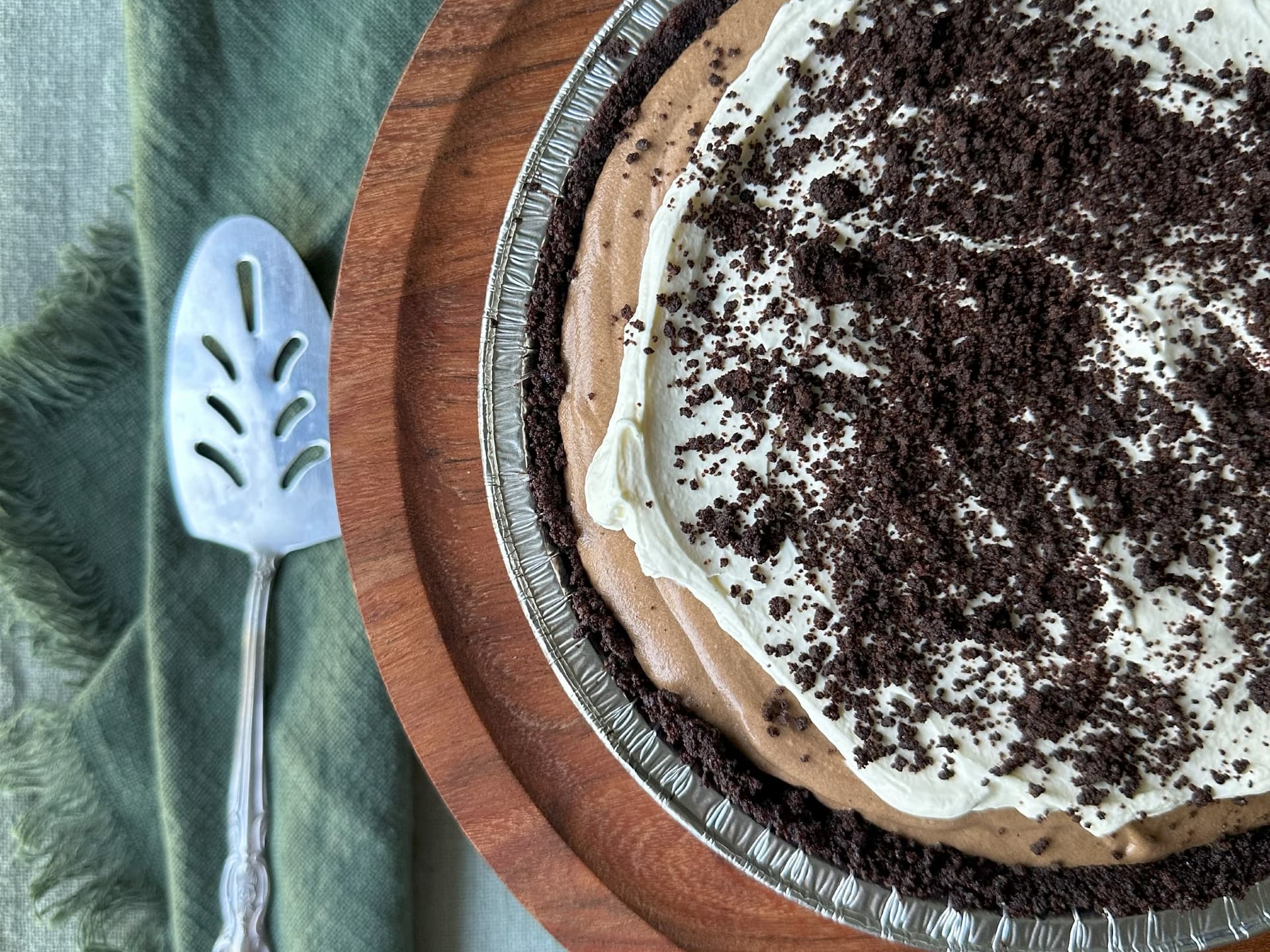 Wave goodbye to Sara lee and hello to homemade. Chocolate crumbs, chocolate bavarois filling, finished with whipped vanilla creme fraiche.