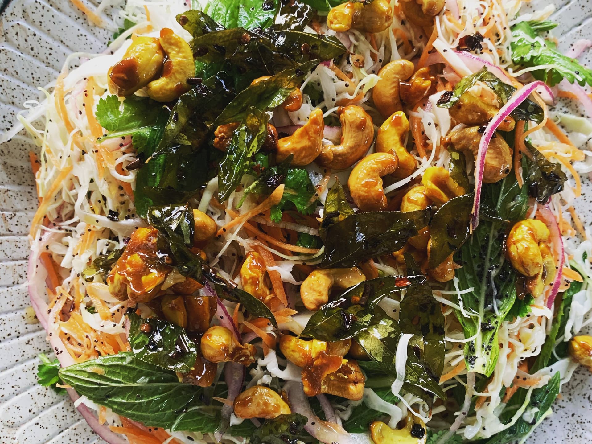 This one is zingy and refreshing just what you need as part of your Christmas feast it would be great with ham or seafood. oh and the turmeric cashews add some tasty crunchy they are sweet salty and addictive